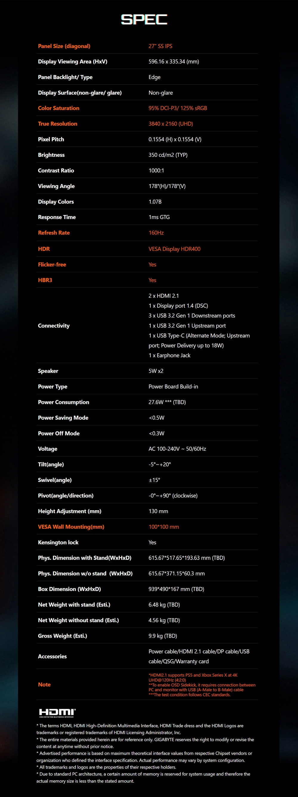 | 特殊功能 | 電競, 4K, 抗藍光, 零閃屏, HDR |