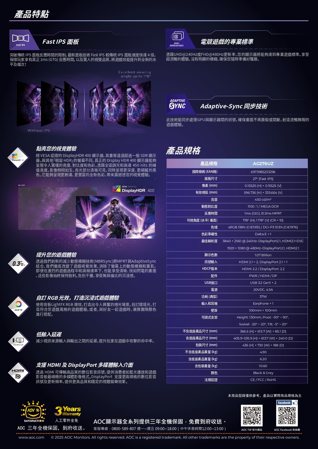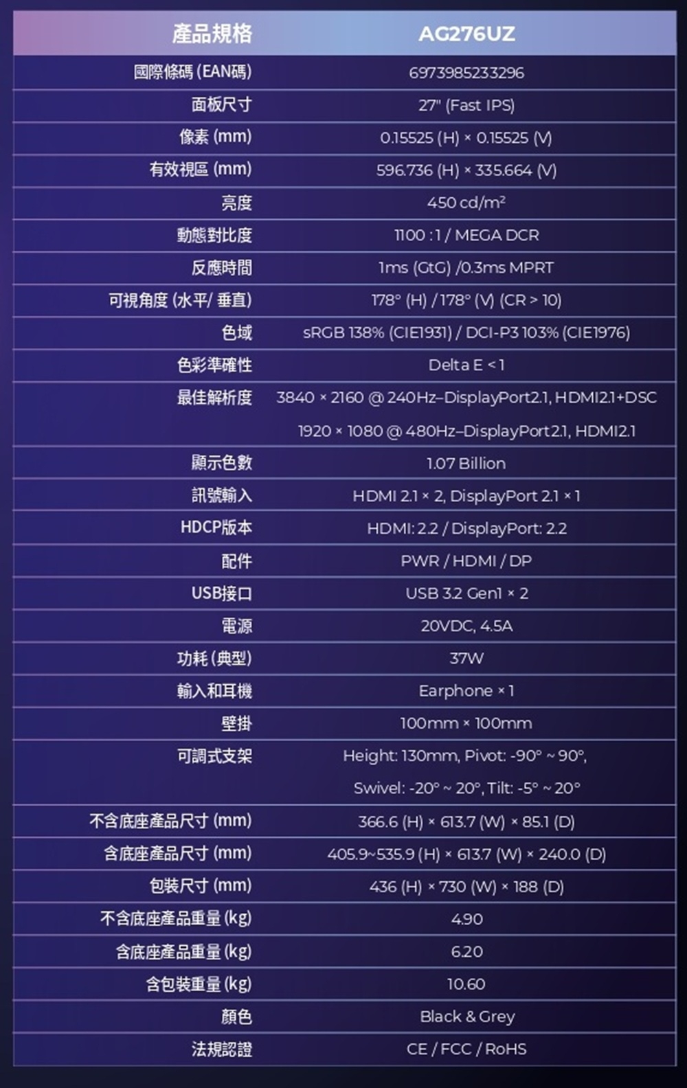 | 型號 | AG276UZ |
