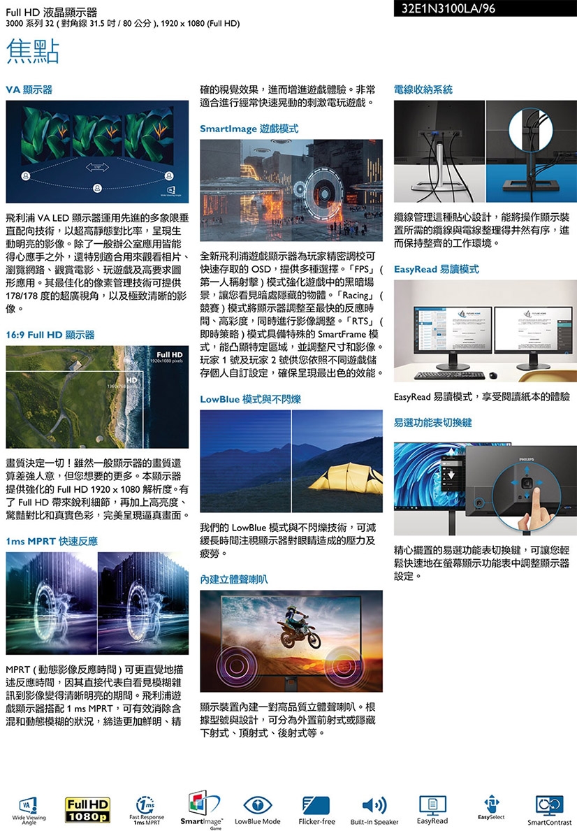 | 產品定位 | 健康護眼款, 看片/追劇首選, 學生入門款, OA辦公用CP值高 |