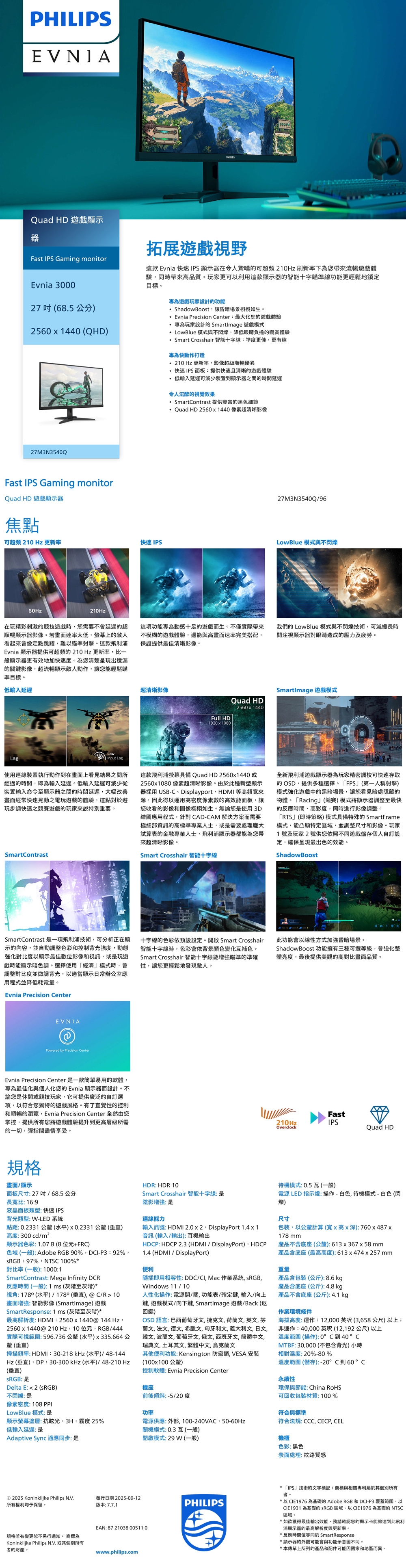 | 特殊功能 | 電競, 抗藍光, 護眼, 零閃屏 |