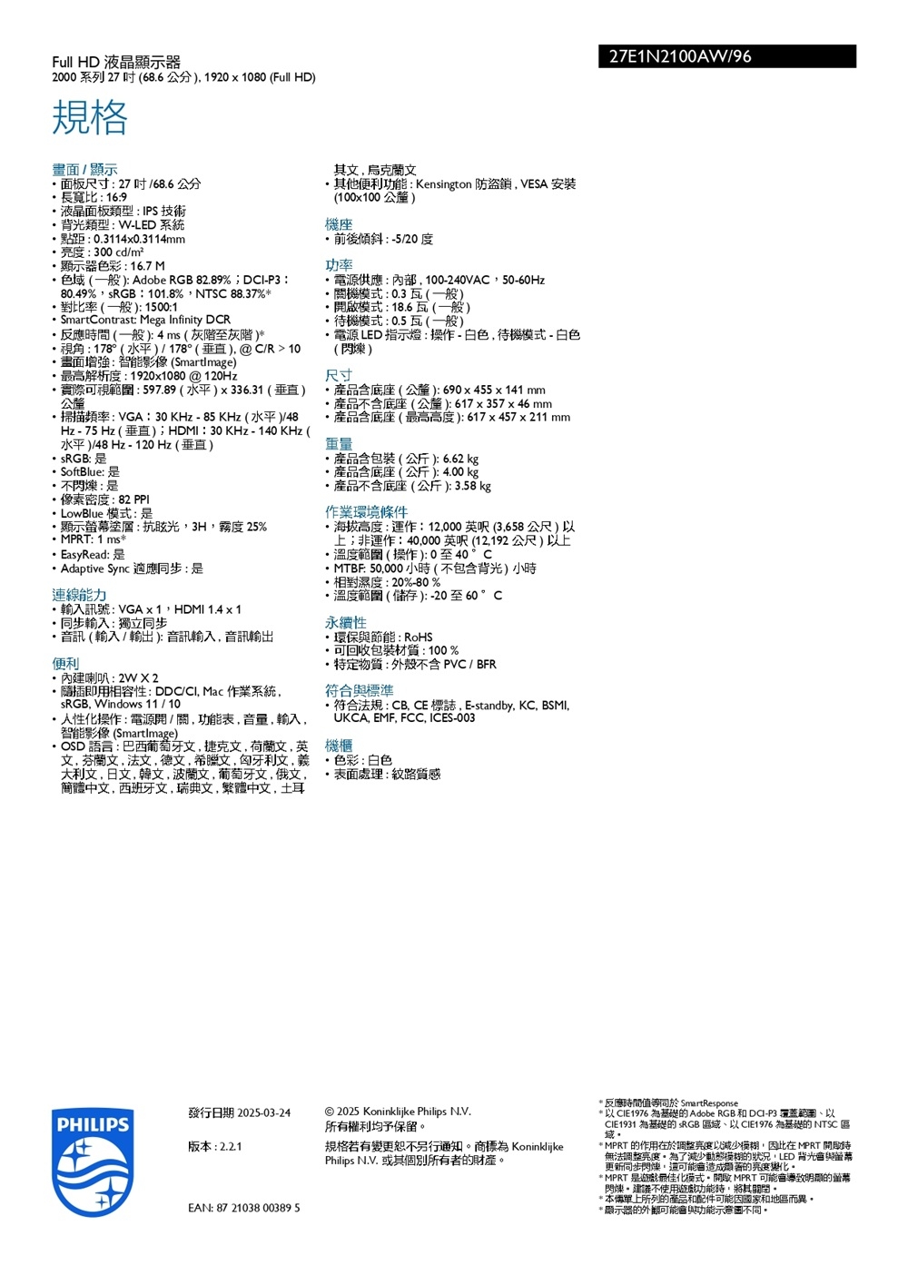 | 特殊功能 | 抗藍光, 護眼, 零閃屏, 廣視角 |