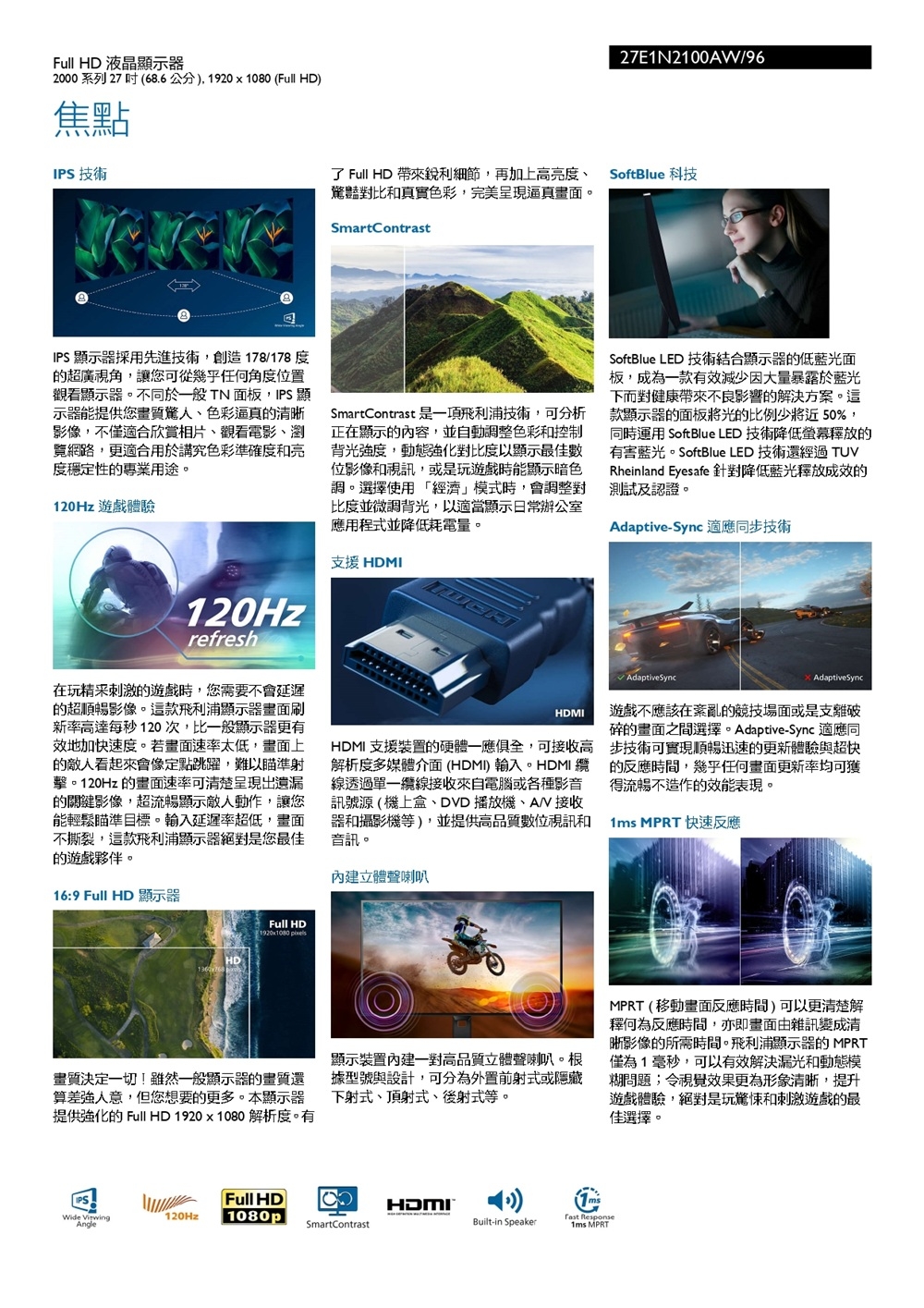 | 產品定位 | 看片/追劇首選, OA辦公用CP值高, 學生入門款, 健康護眼款, 電競Gamer必買 |