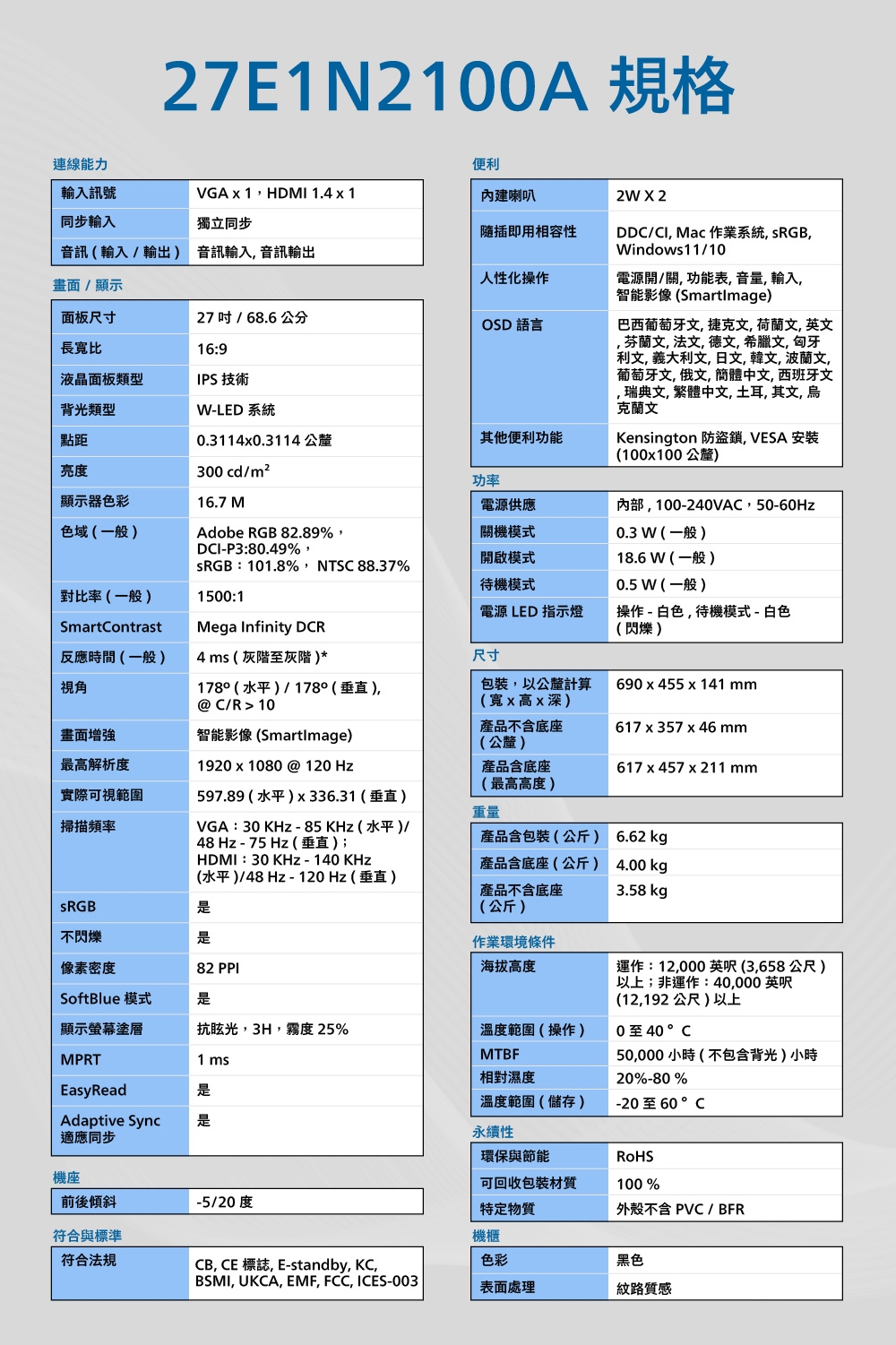 | 特殊功能 | 窄邊框, 護眼, 零閃屏, 抗藍光 |