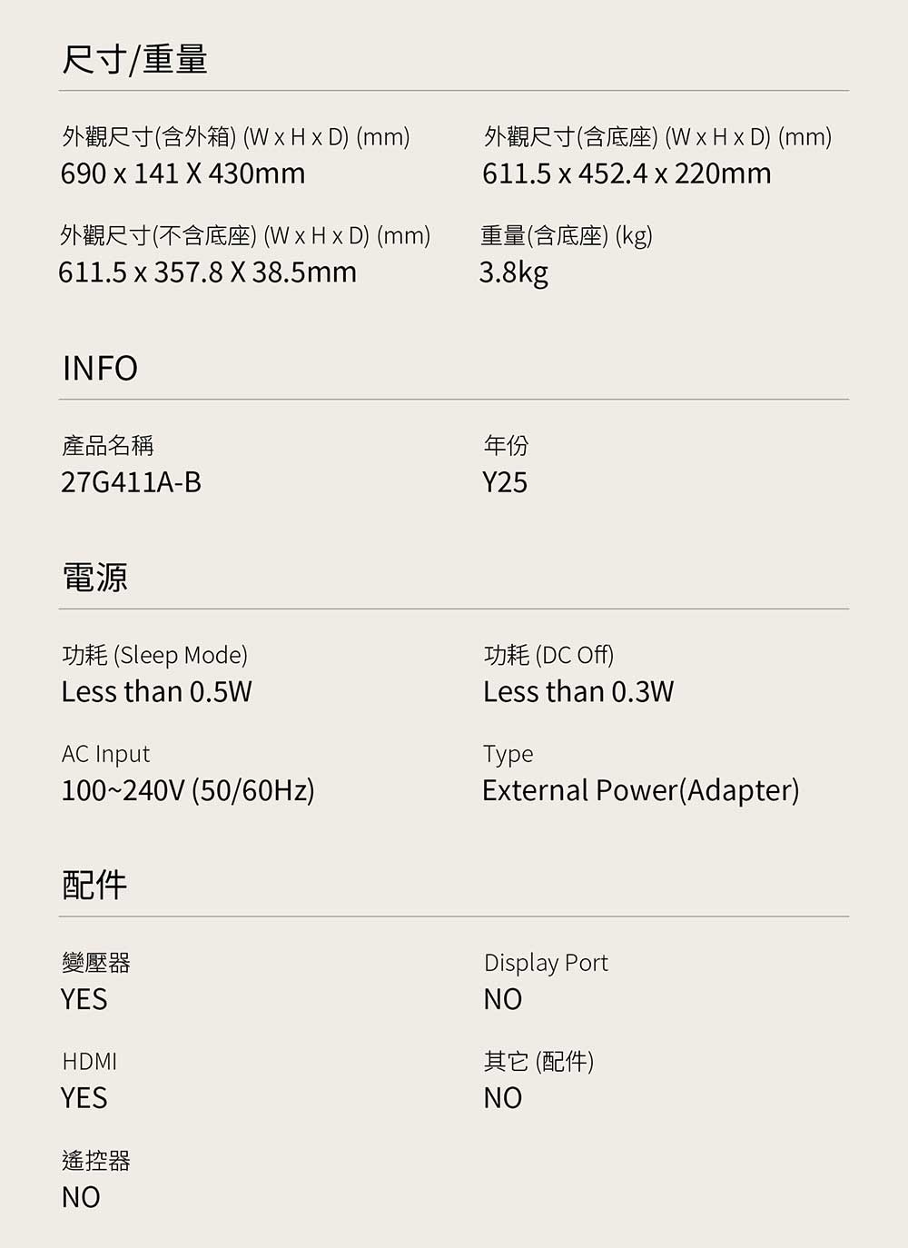 | 型號 | 27U411A-B |