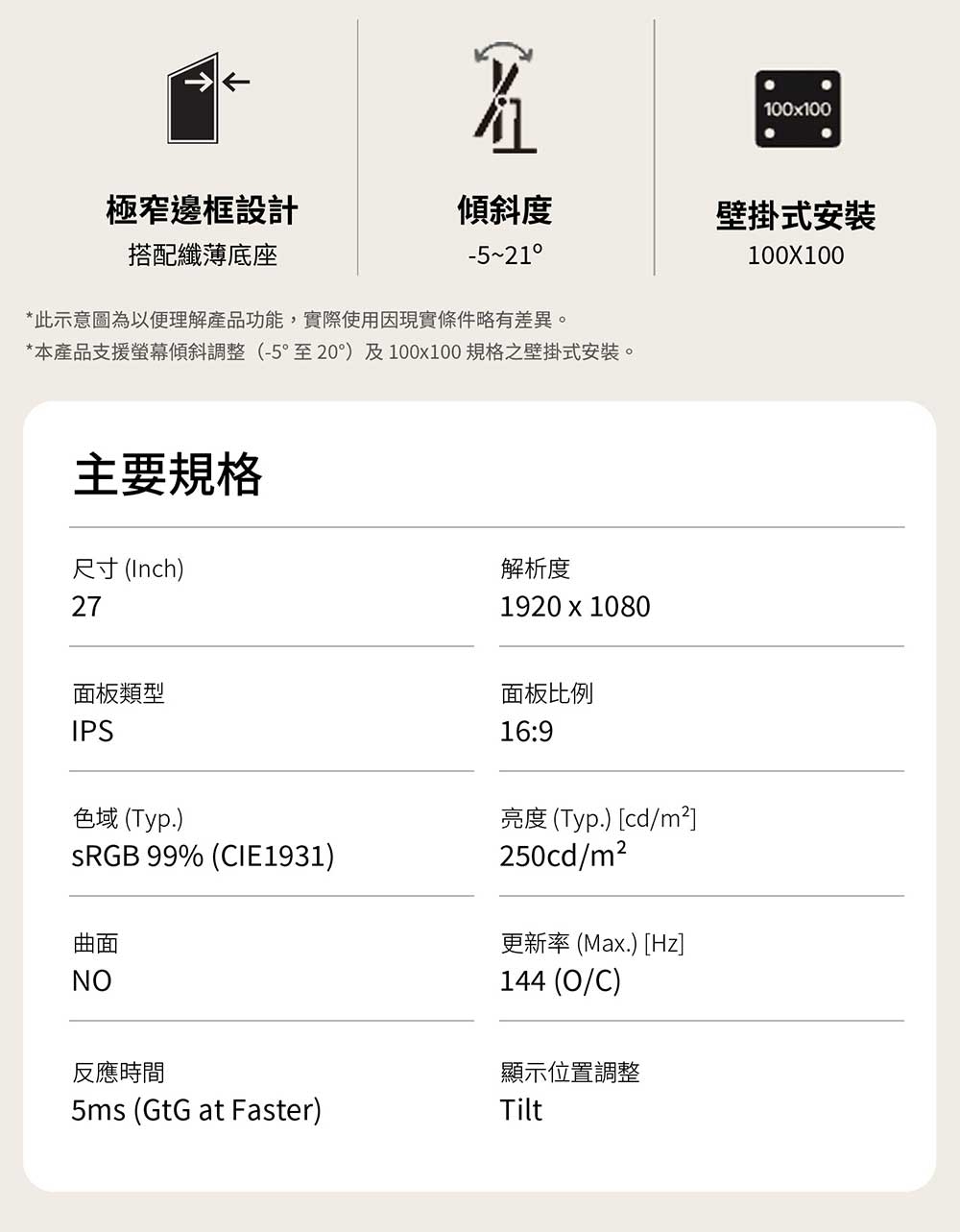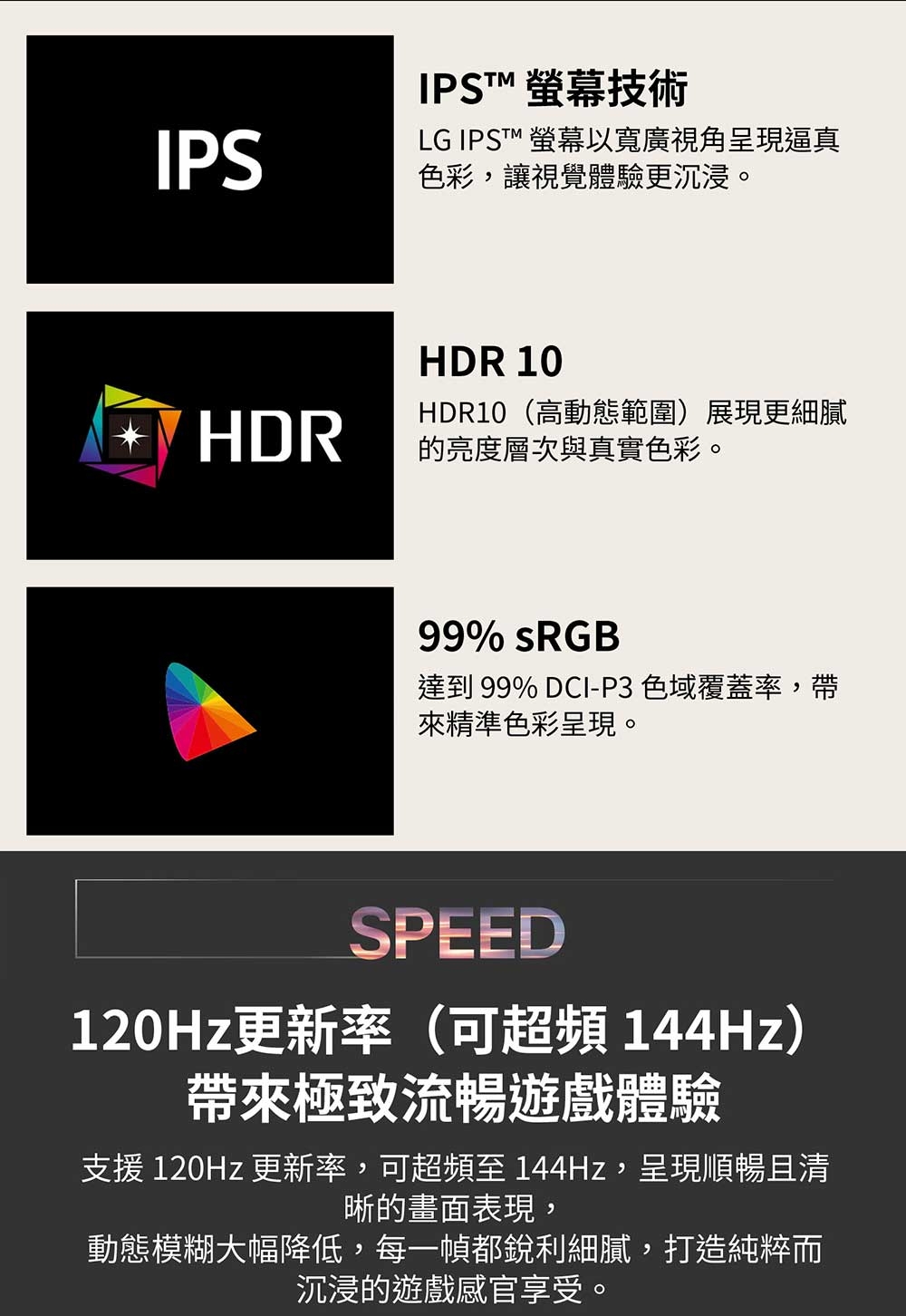 | 產品定位 | 專業攝影/設計職人款, OA辦公用CP值高, 健康護眼款 |
