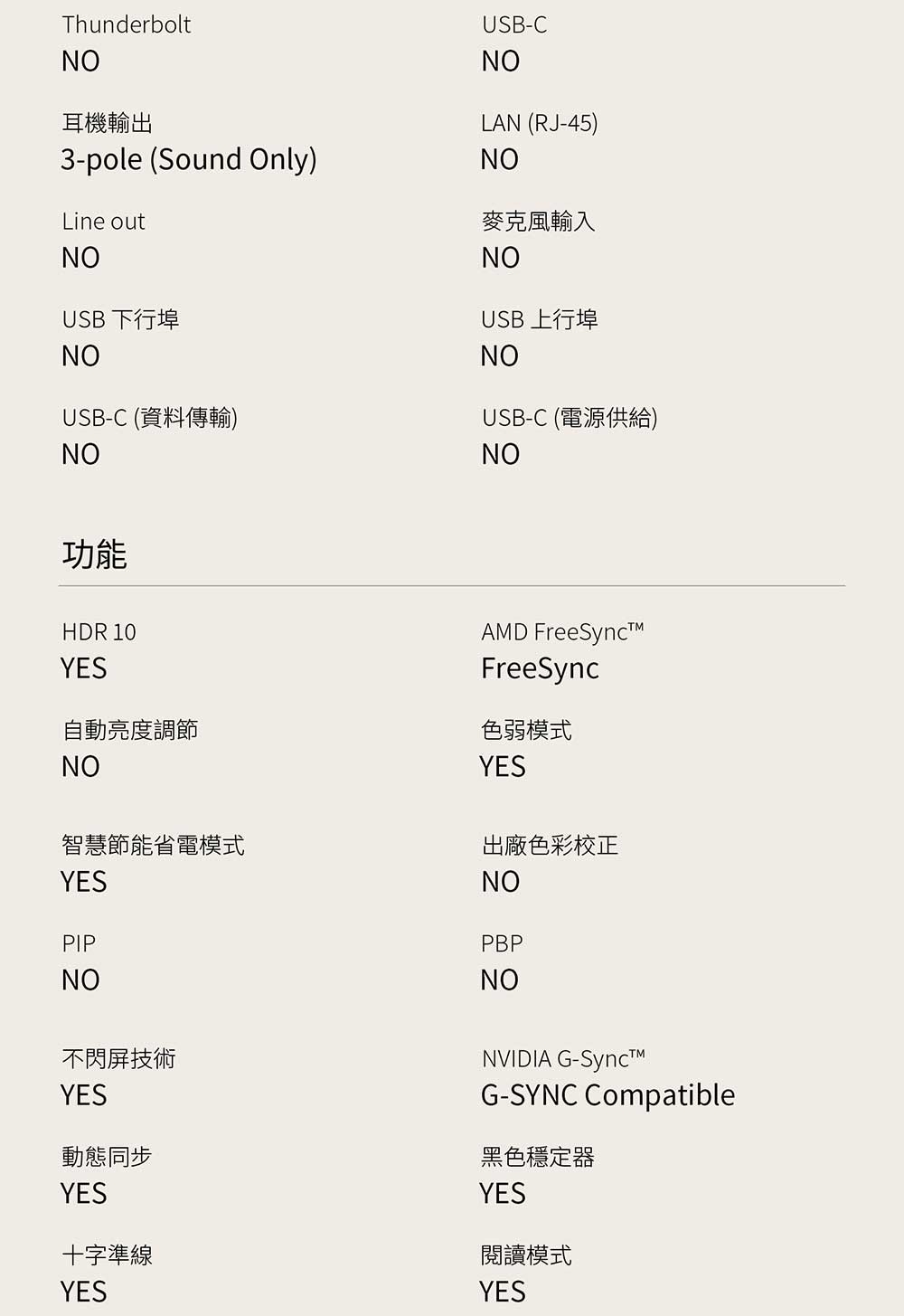 | 螢幕SYNC | 依包裝顯示 |