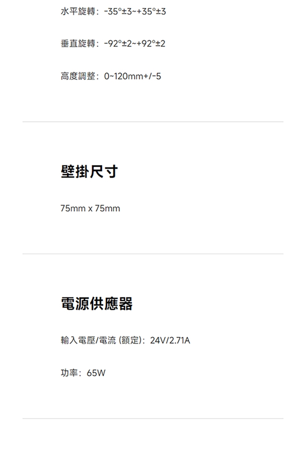 | VESA壁掛 | 無 |