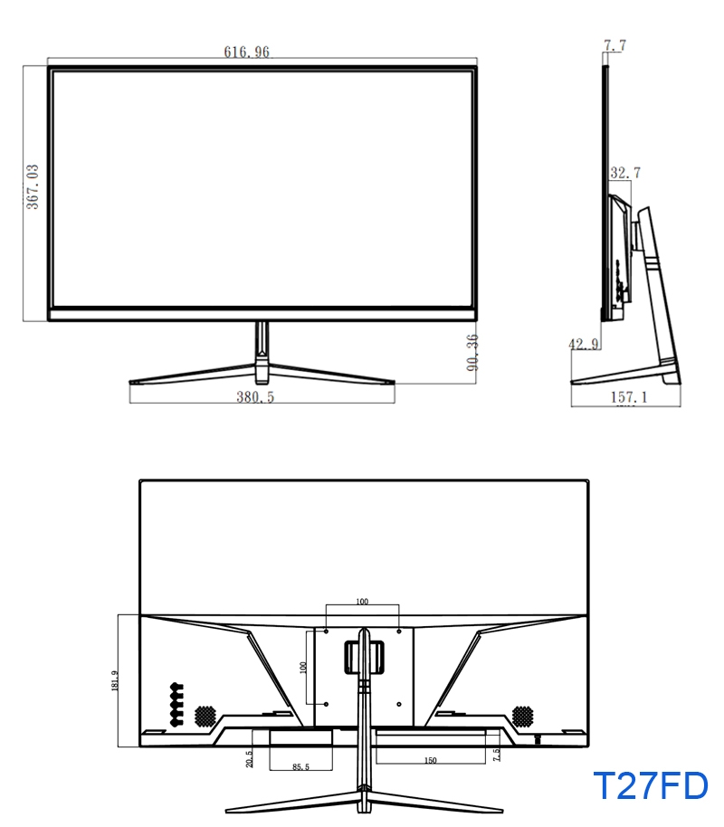 | 外觀尺寸(寬x高x厚)(mm) | 尺寸 (含底座) 61.8 x 45.8 x 15.5 cm |