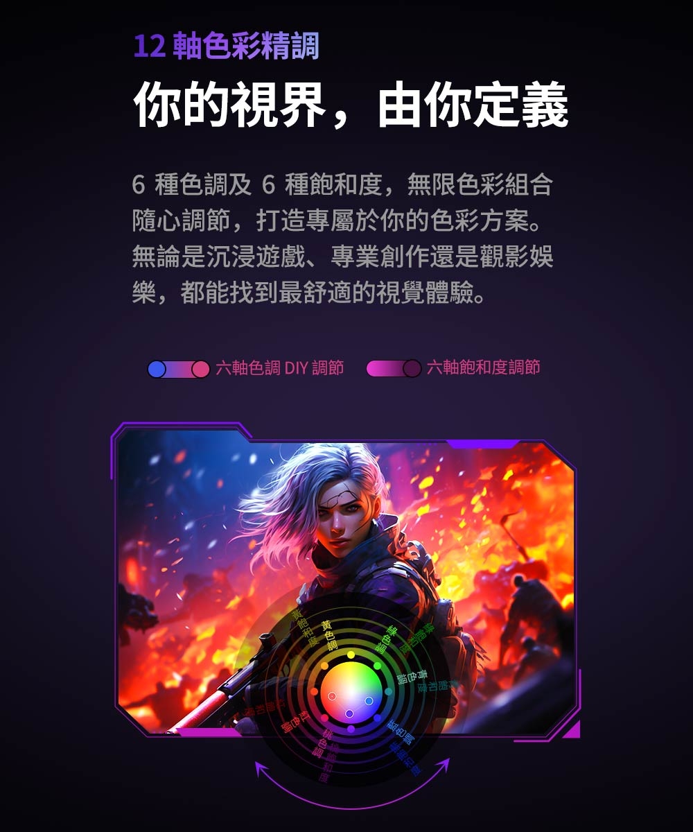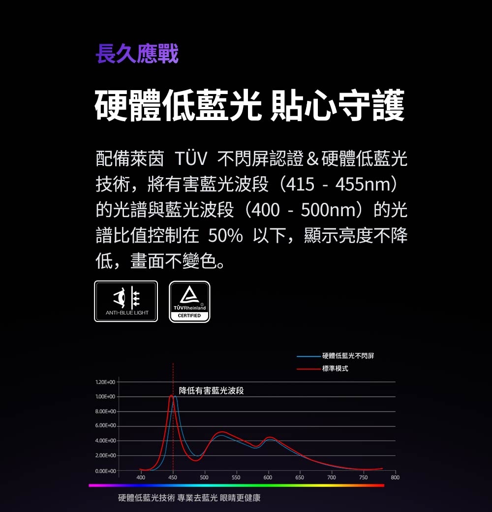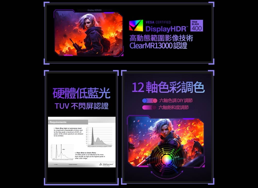| 特殊功能 | HDR, 抗藍光, 電競, 窄邊框, 零閃屏 |