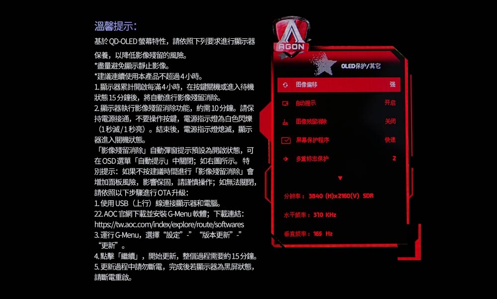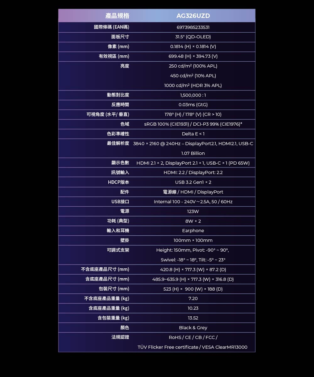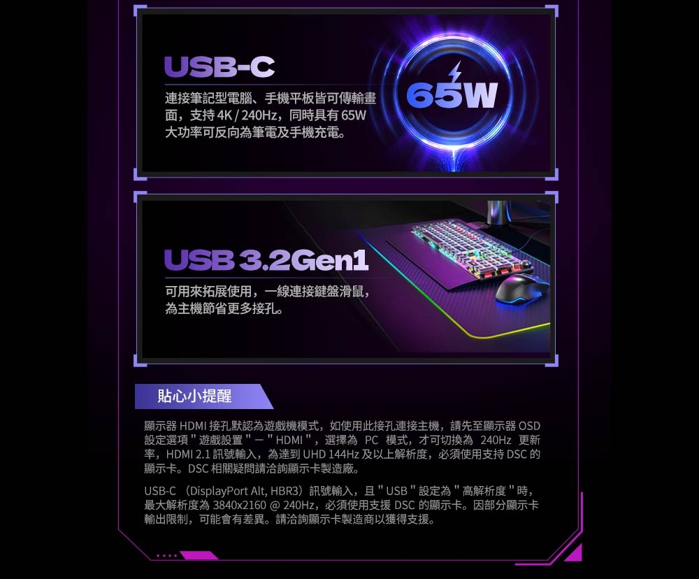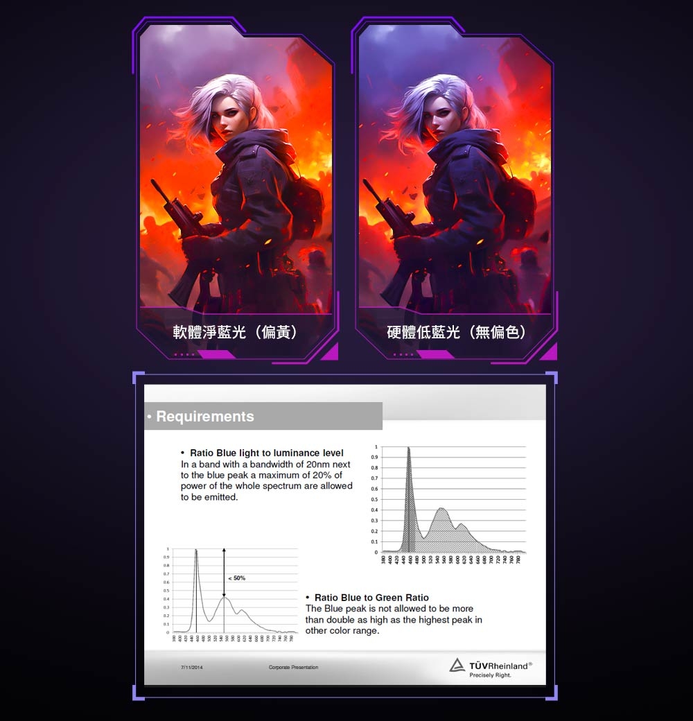 | 特殊功能 | HDR, 抗藍光, 電競, 窄邊框, 零閃屏 |