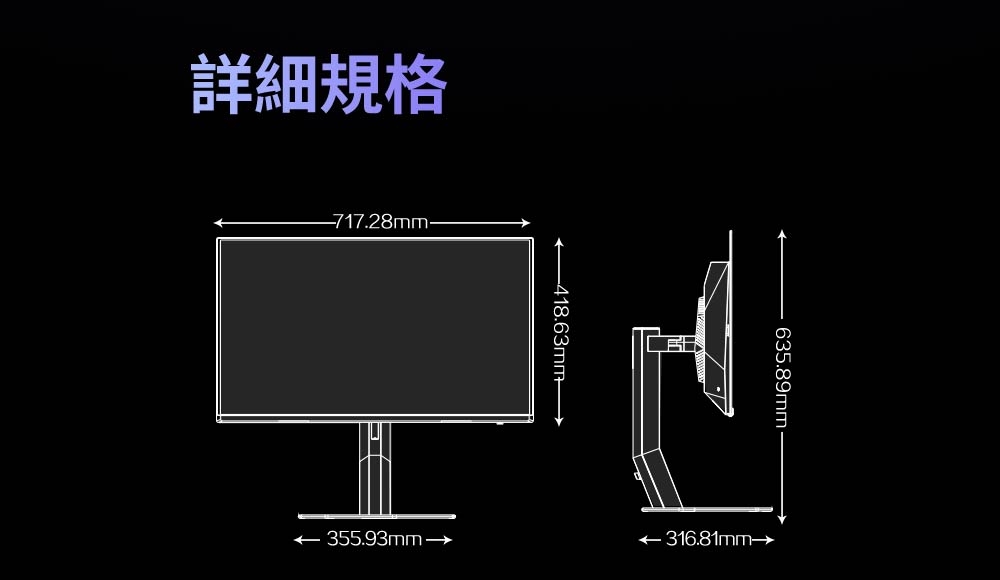 | 外觀尺寸(寬x高x厚)(mm) | 485.9~635.9 (H) × 717.3 (W) × 316.8 (D) |