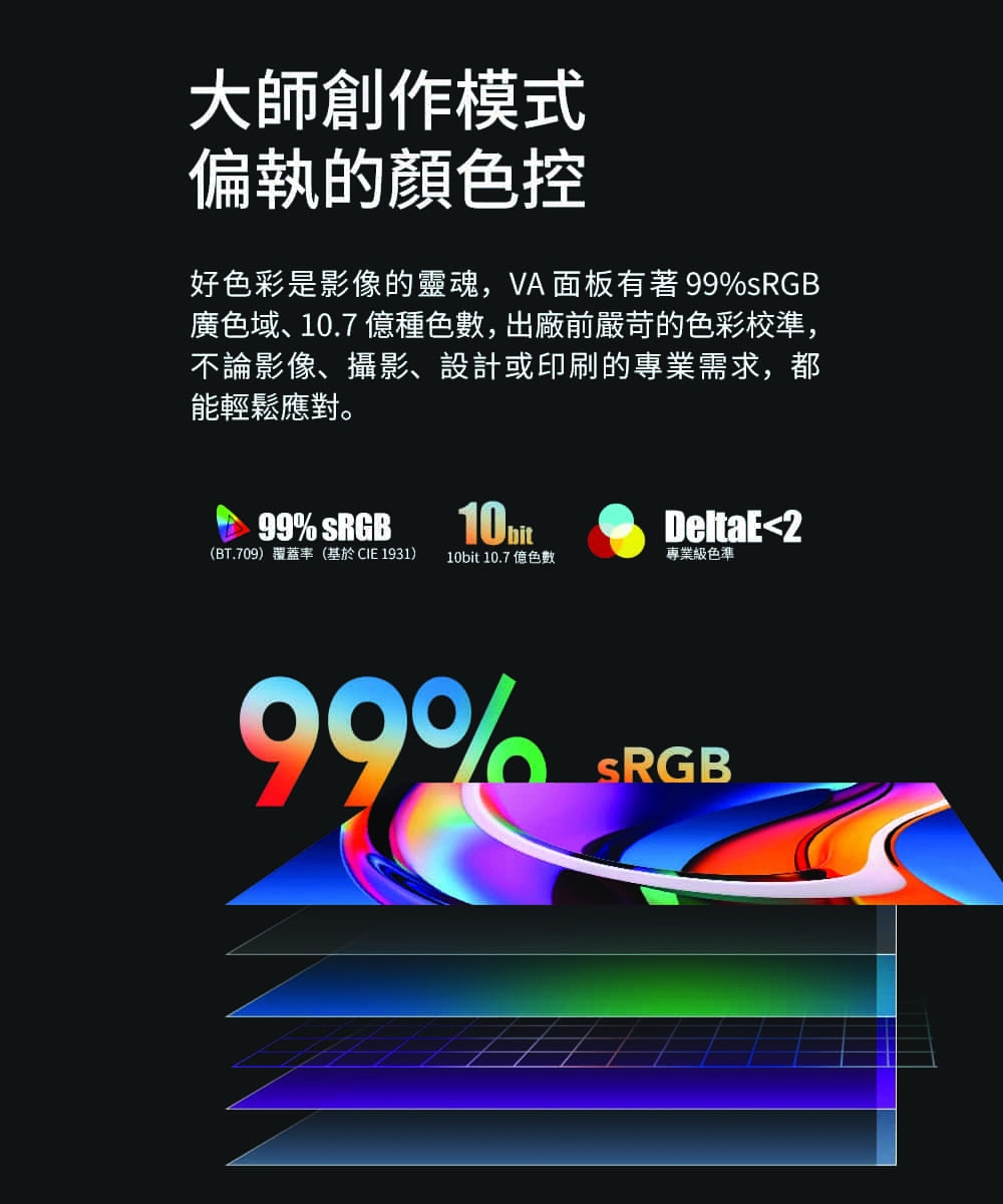 | 支援色彩 | NTSC 110% / sRGB 124%/ DCI-P3 101% |