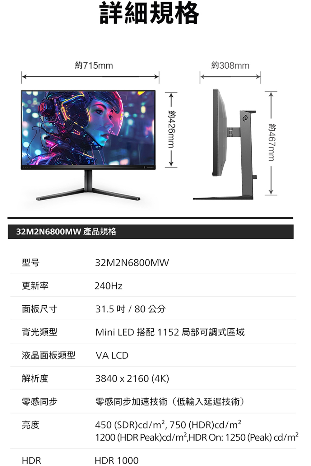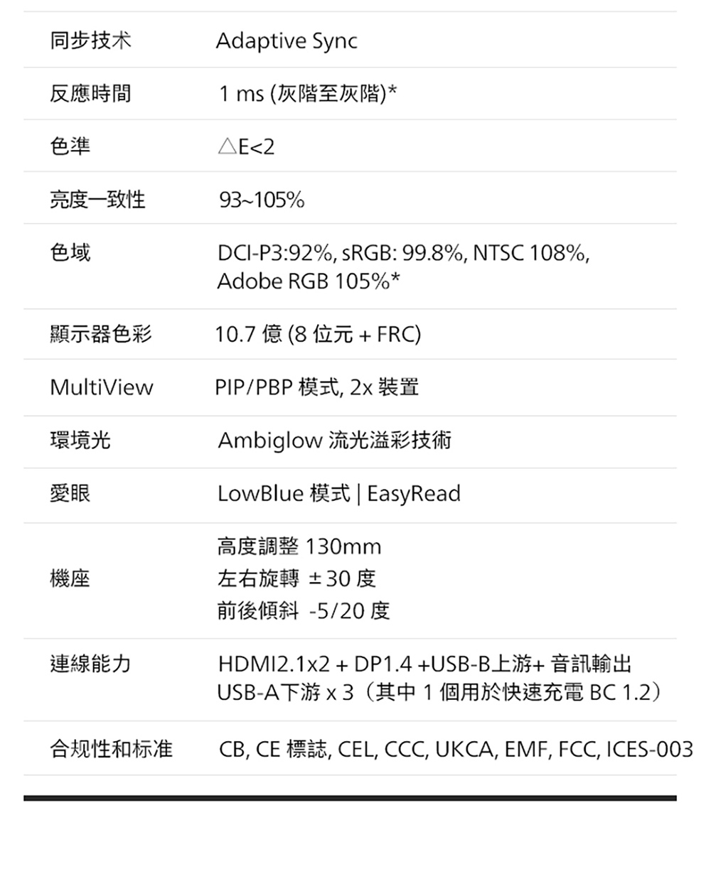 | 特殊功能 | 電競, 抗藍光, 護眼, HDR |