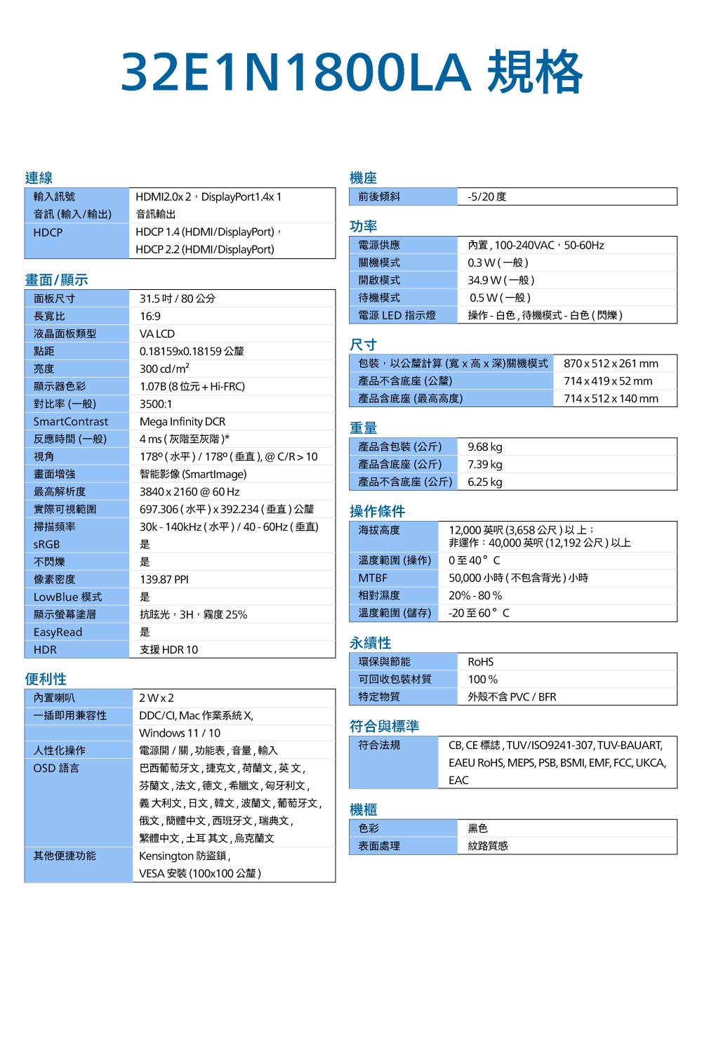 | 最高解析度 | UltraClear 4K UHD (3840x2160) |
