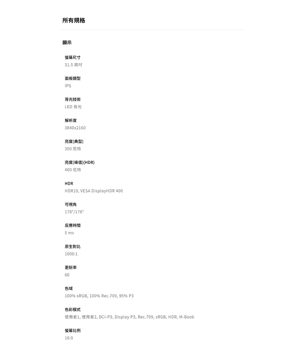 | 螢幕尺寸(吋) | 31.5吋 |
