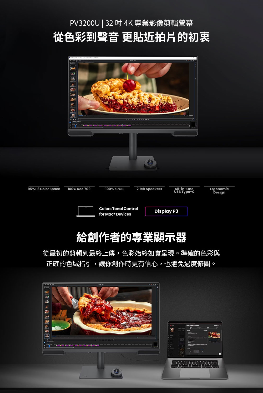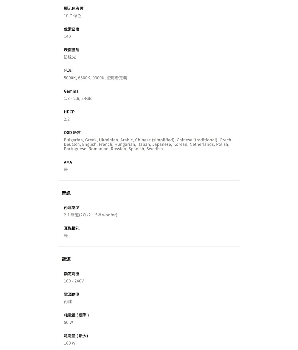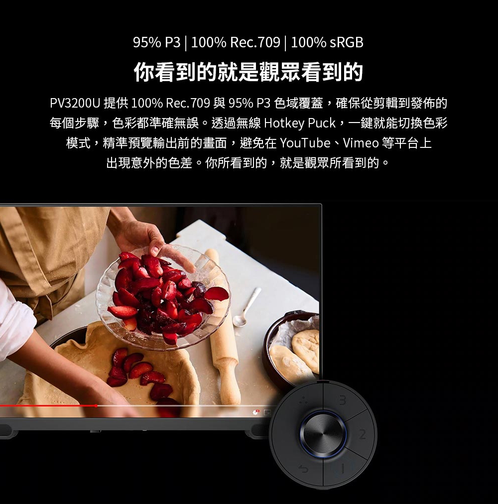 | 支援色彩 | 100% sRGB,100% Rec.709,95% P3 |