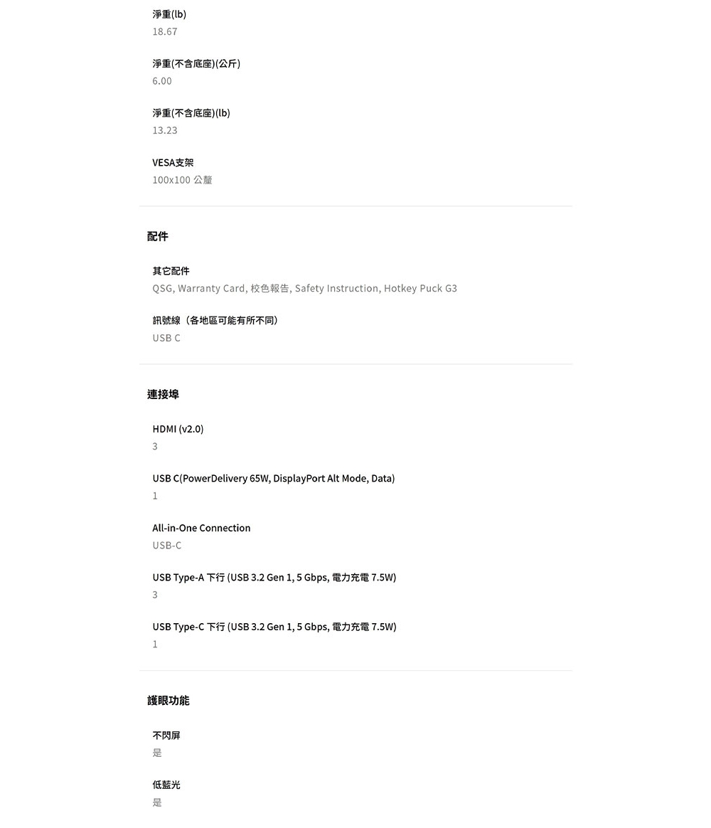 | 訊號輸入介面 | HDMI, Type-C, USB |