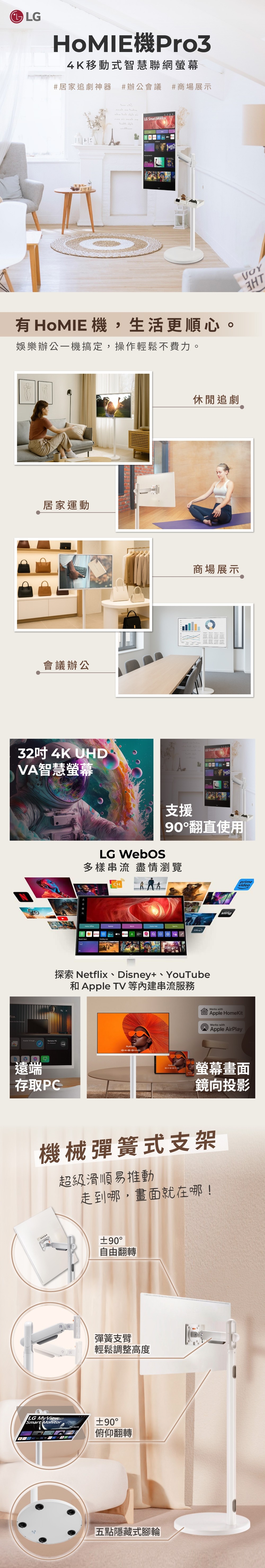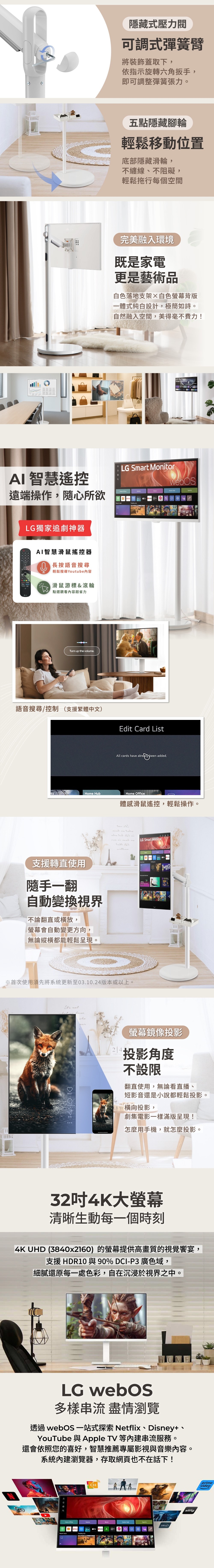 | 特殊功能 | 4K, 窄邊框, 超薄機身, 90度樞軸旋轉 |