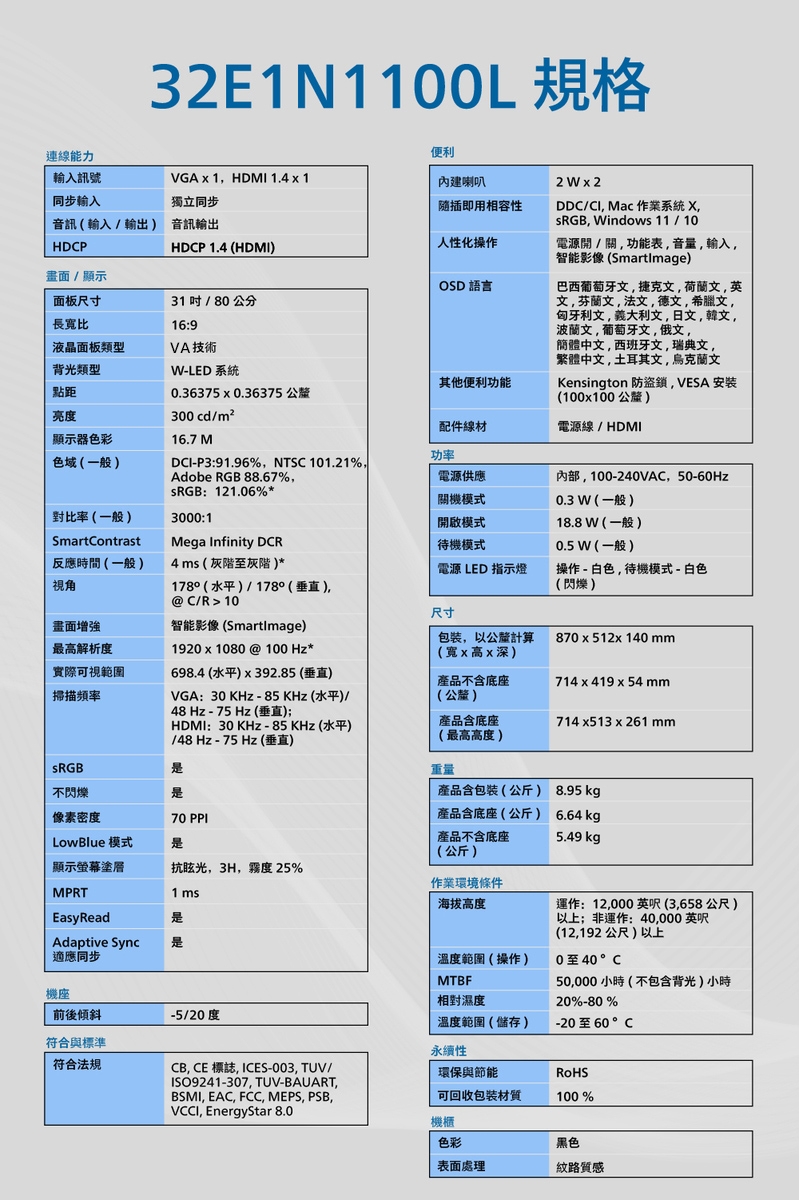 | 型號 | 32E1N1100L |