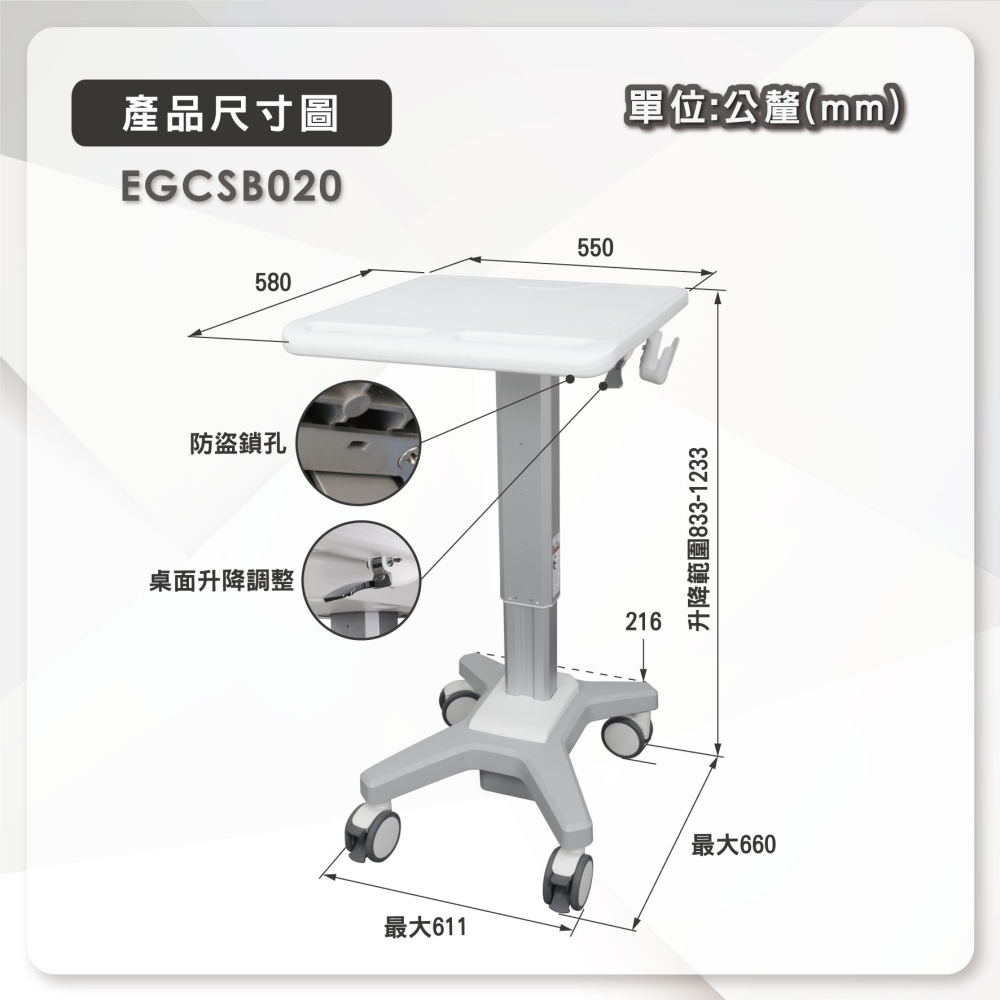 | 產品尺寸 (mm) | 611x 1233 x 660 mm |