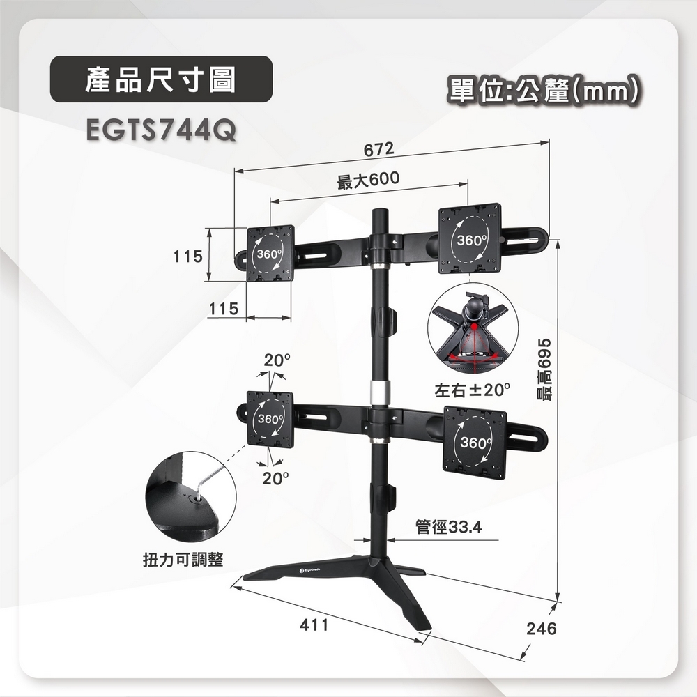 | 最大承載重量 | 單一螢幕載重2-8KG |