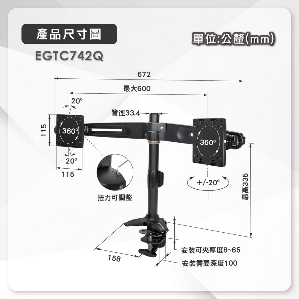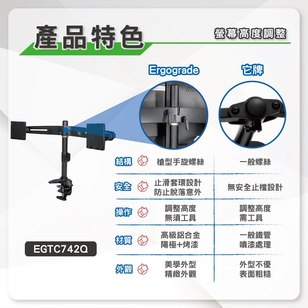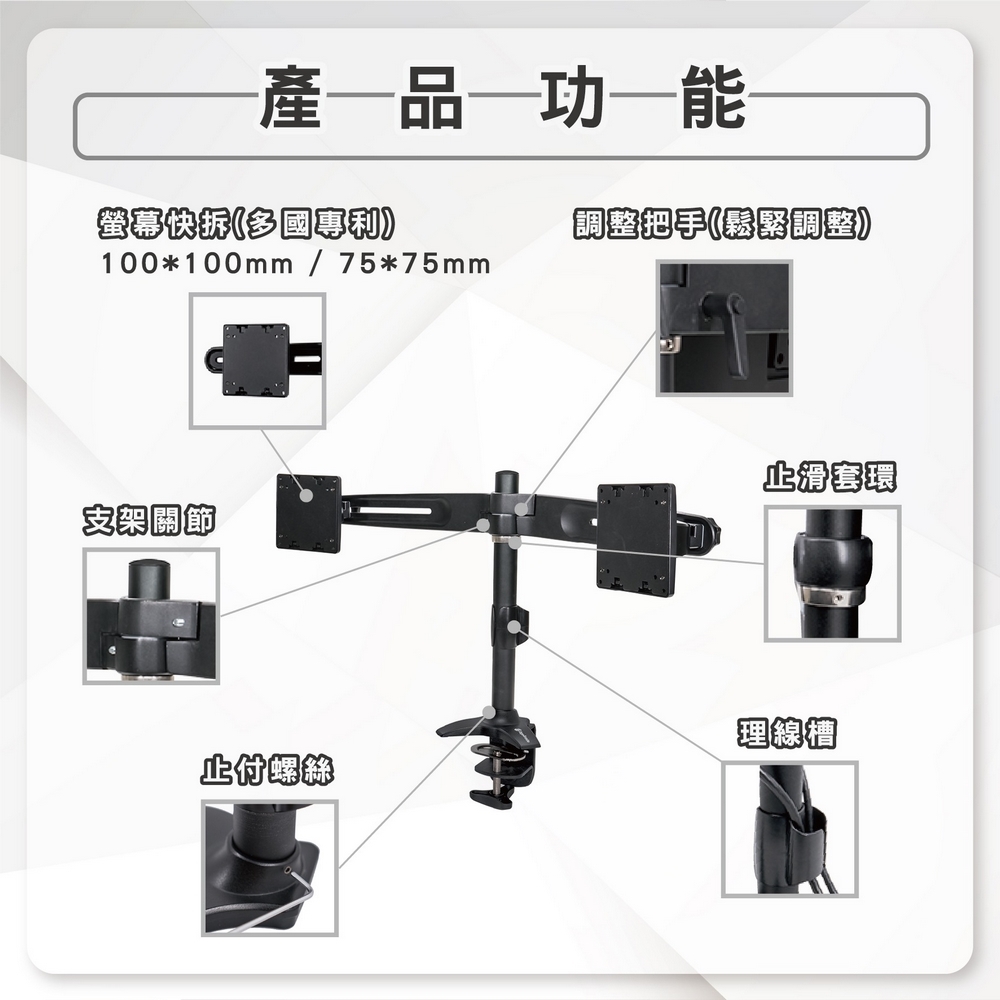 | 功能 | 雙螢幕支架 |