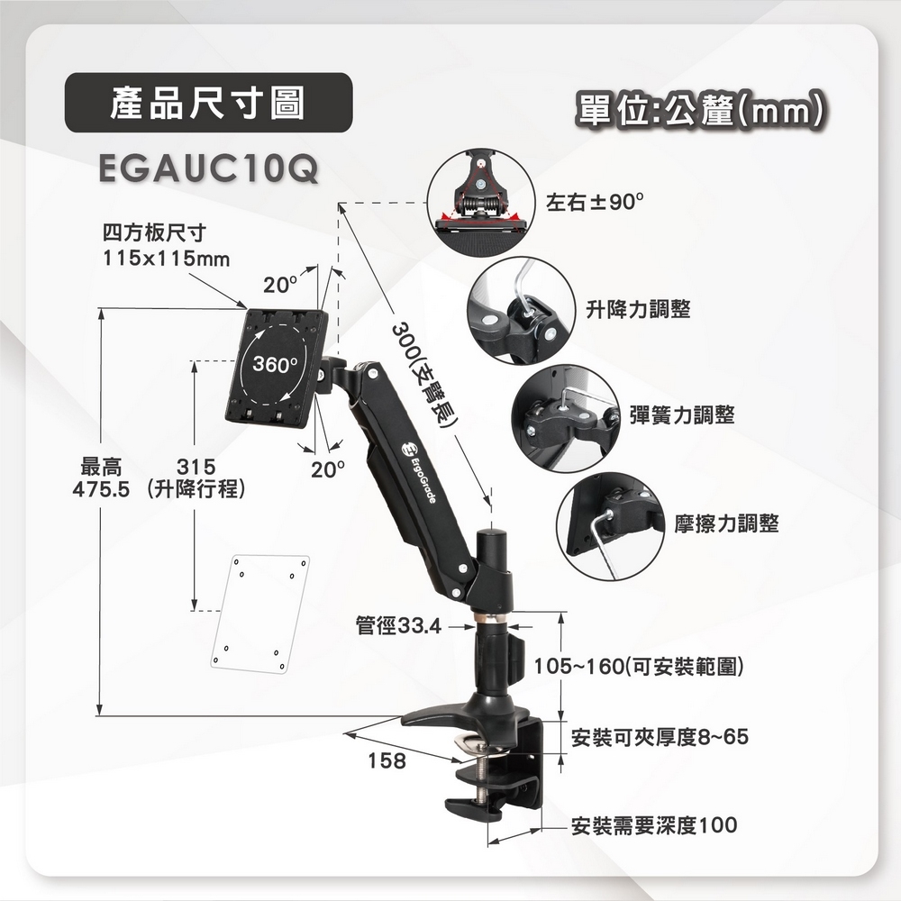 | 最大承載重量 | 螢幕載重:4~12kg |