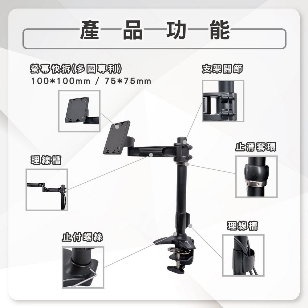 | 適用螢幕尺寸 | 12.5吋以下, 15吋, 17吋, 18.5 吋, 19吋, 19.5 吋, 20吋, 21.5 吋, 22吋, 23吋, 23.6吋, 24吋, 25吋, 27吋 |