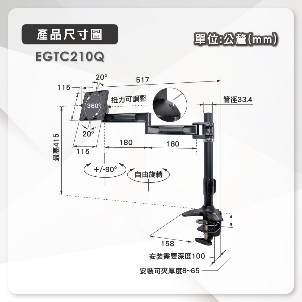 | 產品尺寸 (mm) | 158 x 370 x 517 mm |