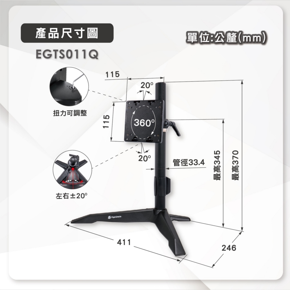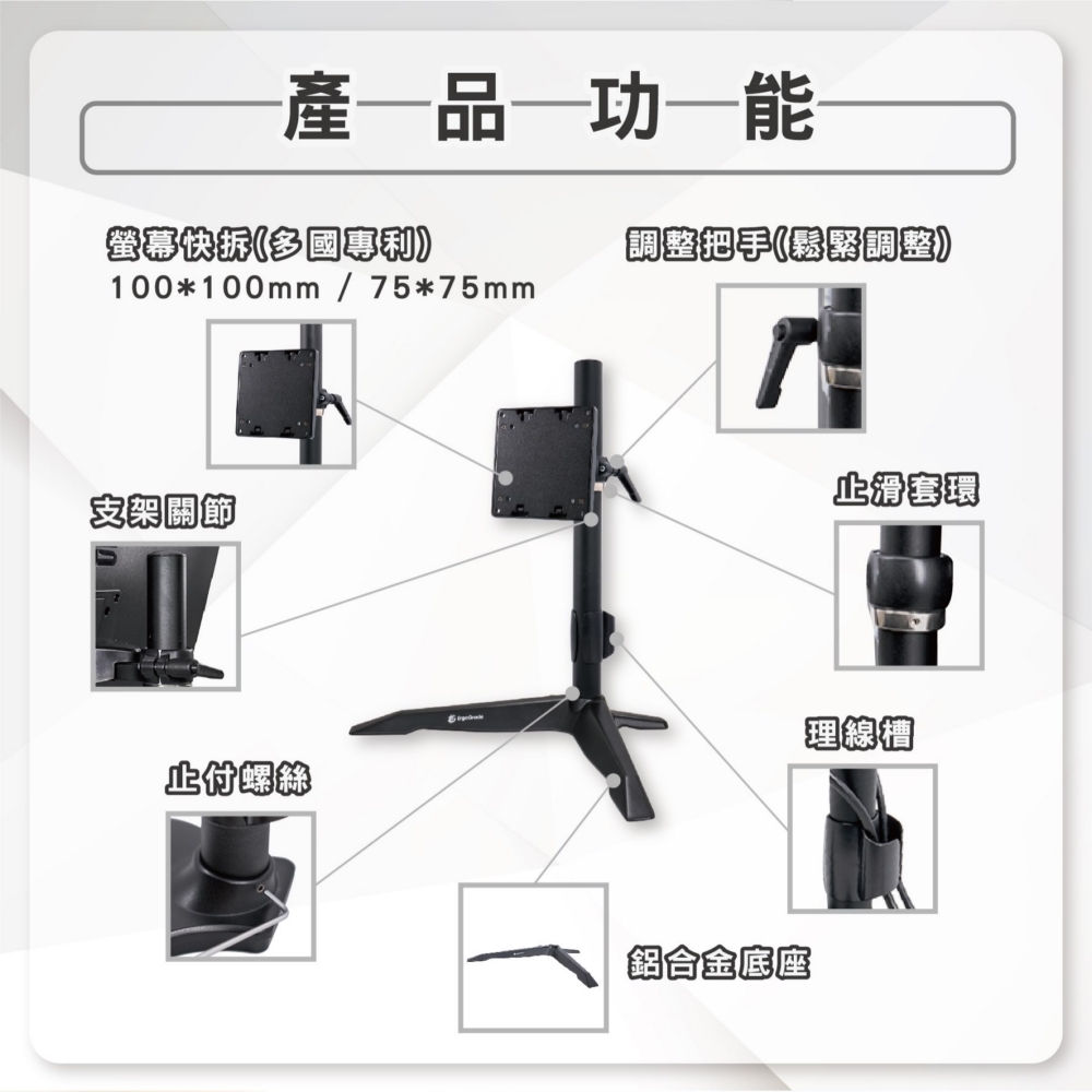 | 功能 | 單螢幕支架 |