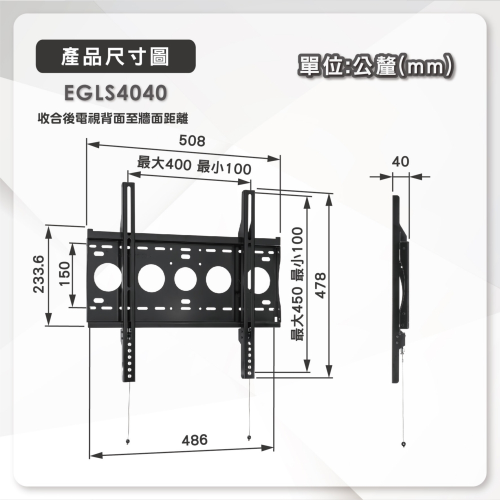 | 適用螢幕尺寸 | 27吋, 28吋, 29吋, 32吋, 34吋, 35吋, 40吋, 50吋 |