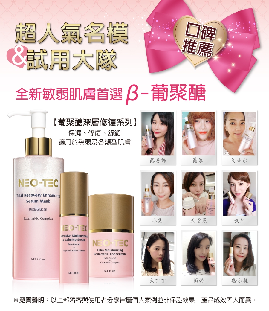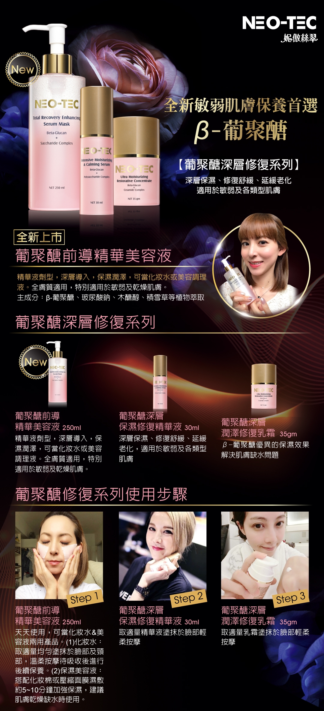 | 商品名稱 | NEO-TEC妮傲絲翠 葡聚醣前導精華美容液250ml(2入 加贈面膜2片) |