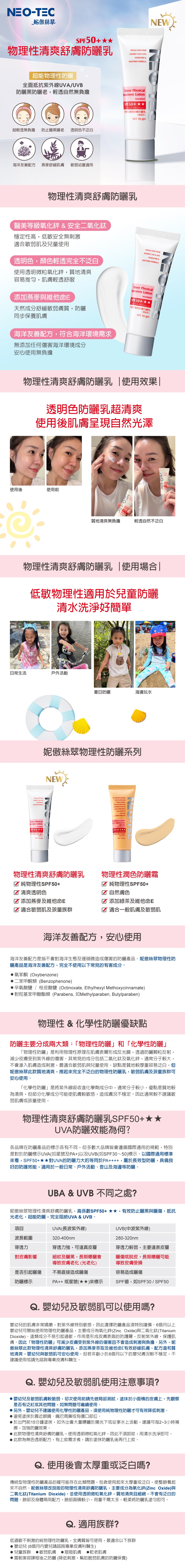 | 商品名稱 | ( 買3送2)NEO-TEC 妮傲絲翠 物理性清爽舒膚防曬乳 (透明色)SPF 50+ ★★ |