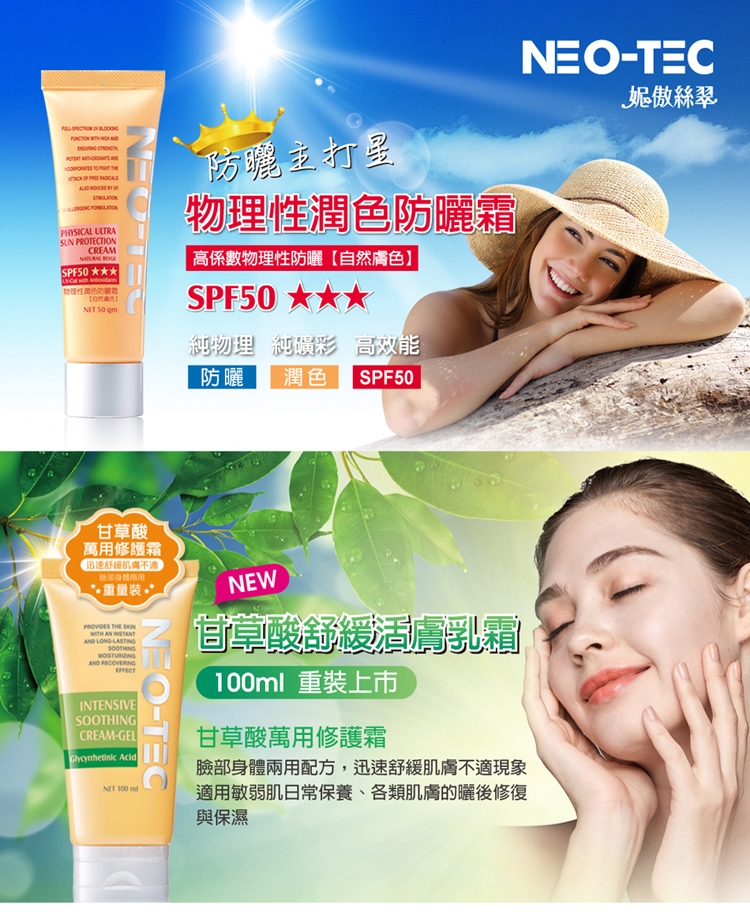 | 規格/容量 | (2入) NEO-TEC妮傲絲翠甘草酸舒緩活膚乳霜50ml |