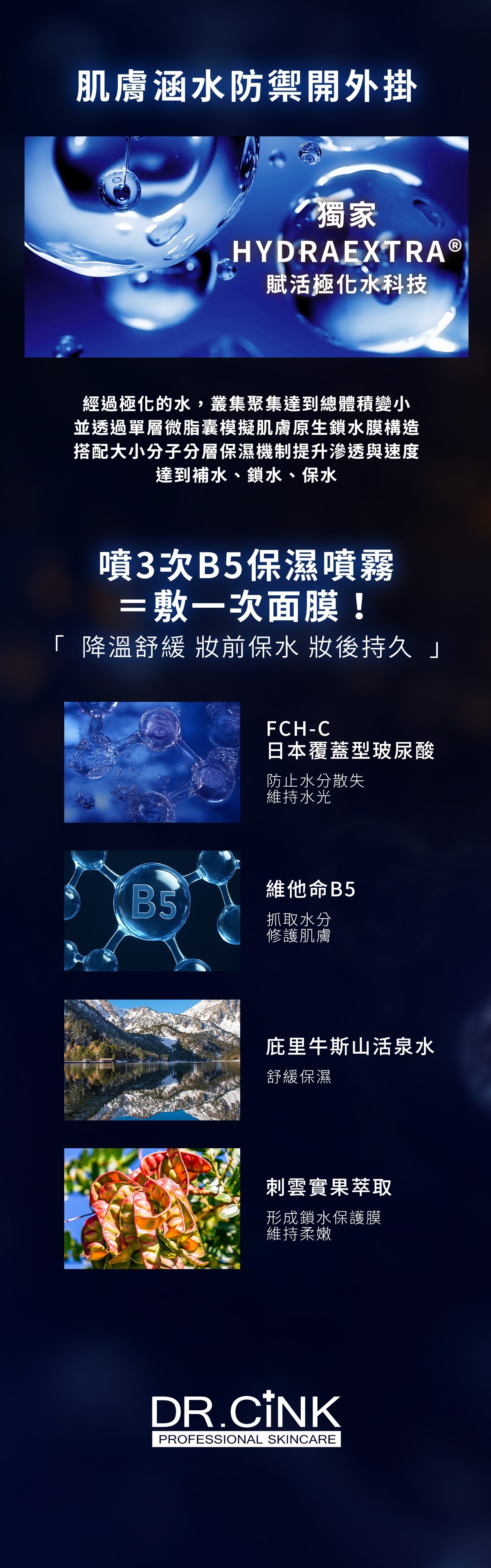 | 商品名稱 | DR.CINK 達特聖克 (升級)B5水活源肌膚保濕噴霧 |