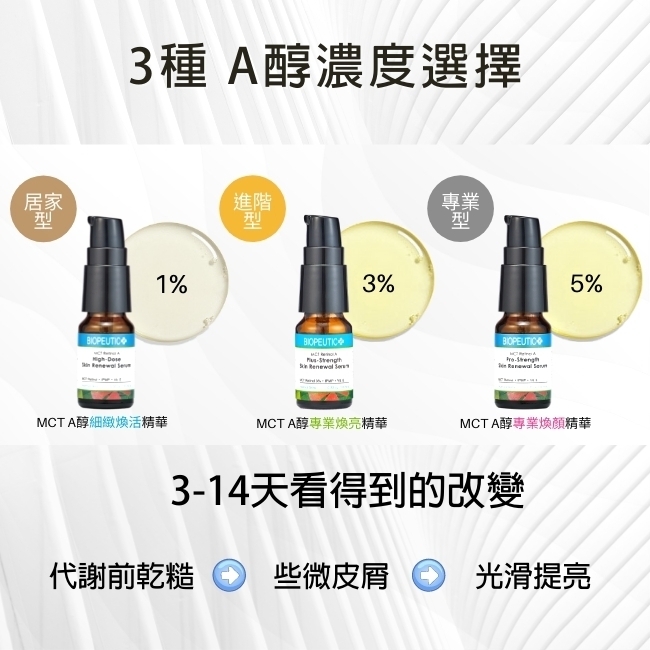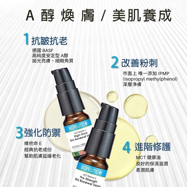| 商品名稱 | Biopeutic葆療美 MCT A醇細緻煥活精華(1%居家型) 30ml |