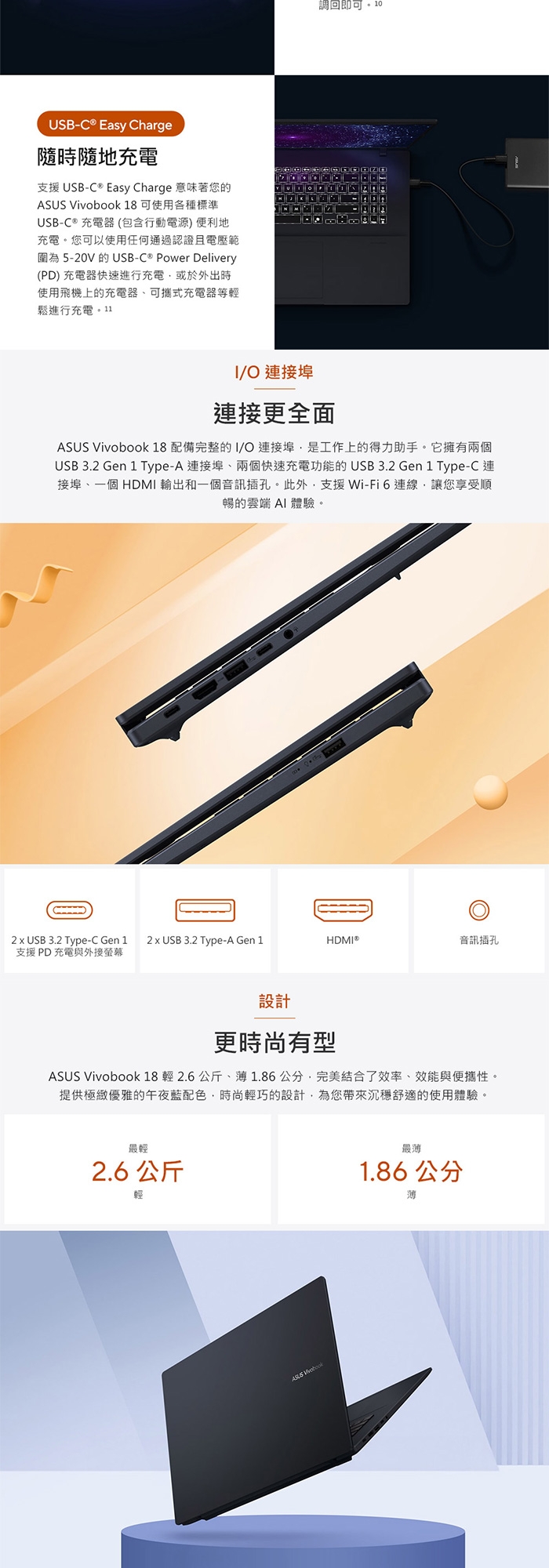 | 其他連接埠 | HDMI/複合式耳機/麥克風 |