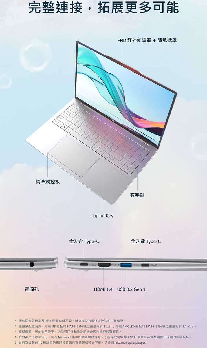 | 其他連接埠 | USB Type-A*2(USB 3.2 Gen 1)、麥克風輸入(與耳機/喇叭輸出共用jack |