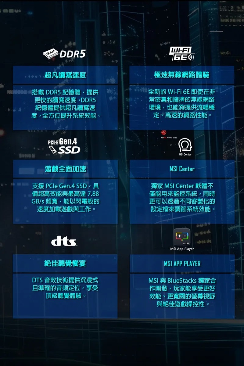 | 無線網路 | Gb LAN 802.11 ax Wi-Fi 6E + Bluetooth v5.3 |