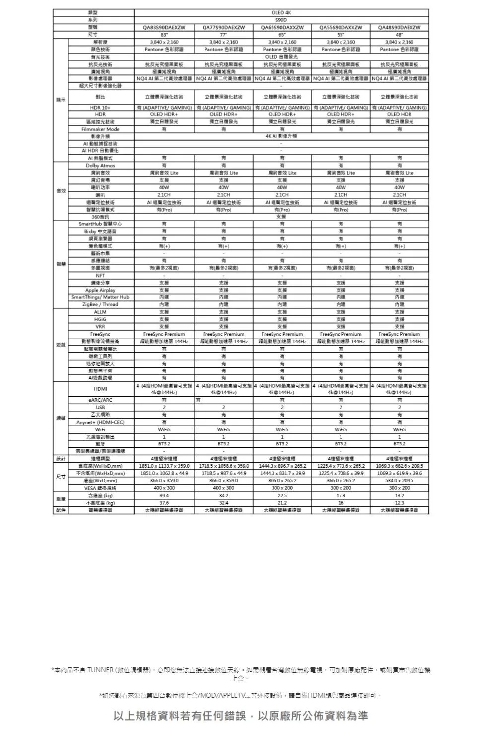 SAMSUNG三星 QA65S90FAXXZW 65吋4K OLED電視