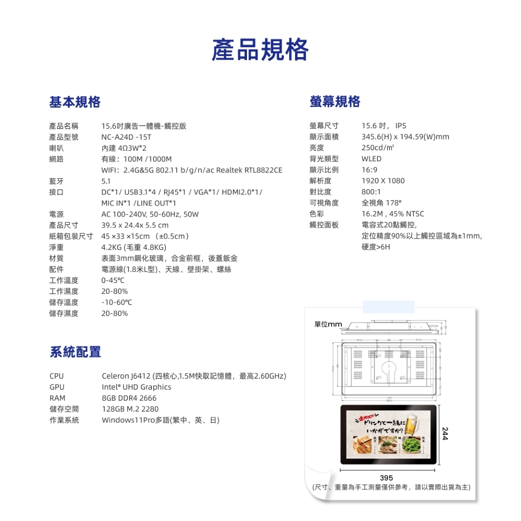 | 後面板連接埠 | DC*1、USB3.1*4、RJ45 |