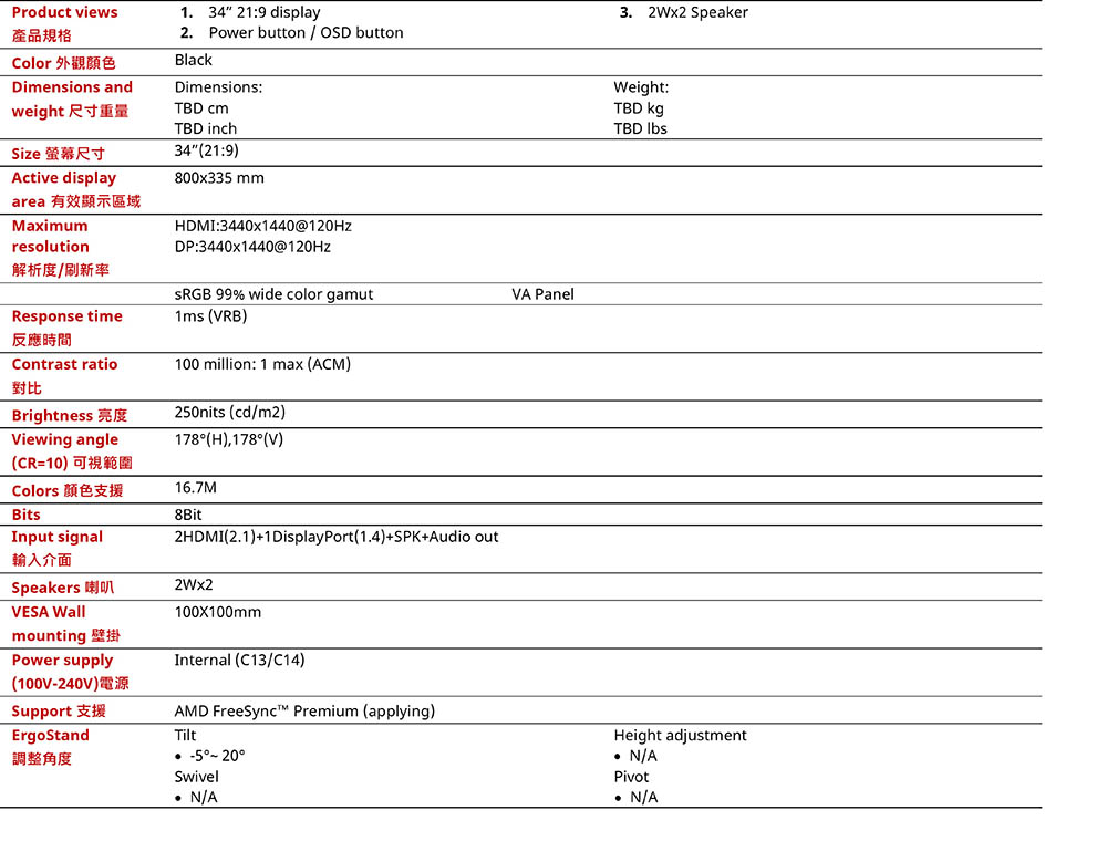 | 尺寸 | 34型 |