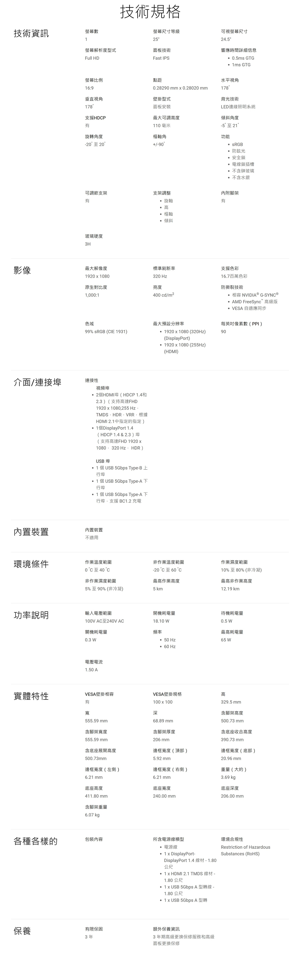 | 解析度 | 1920*1080(FHD)以下 |