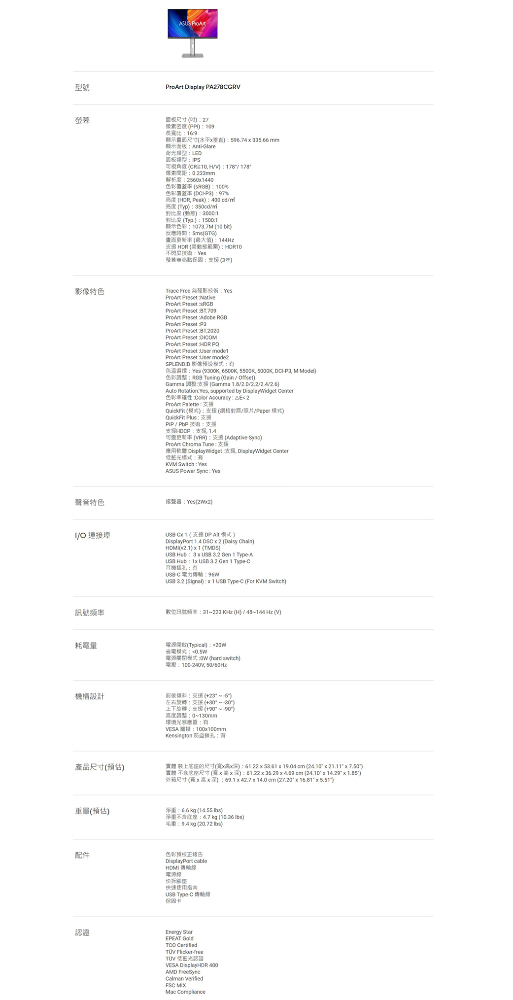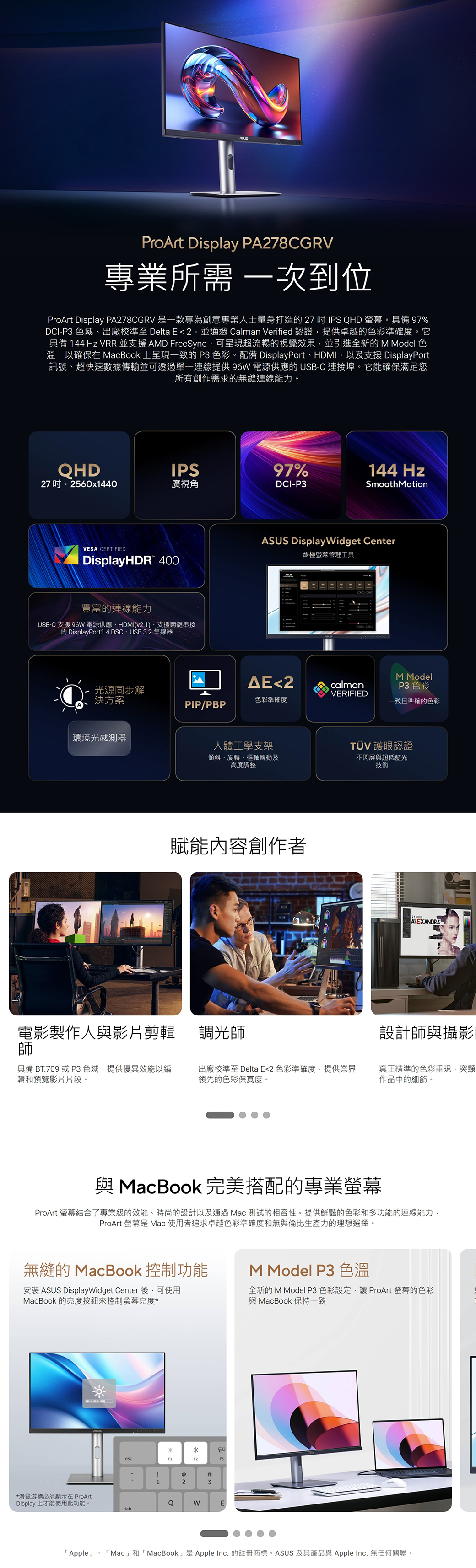 | 功能 | ≧99% sRGB, Delta E ≦ 2 |