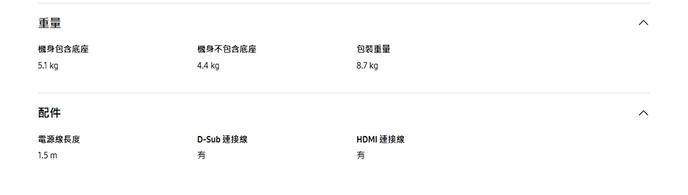 | 訊號輸入介面 | HDMI, D-Sub(VGA) |